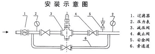 ②安装时应注意使管路中介质的流向与气体减压阀休上所示箭头的方向一致。
