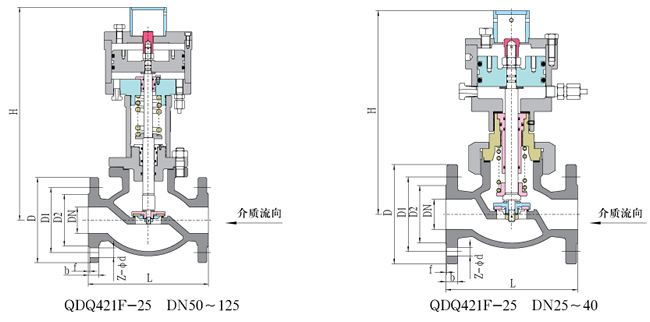 QDQ421F气动紧急切断阀主要外形尺寸和连接尺寸 单位:mm